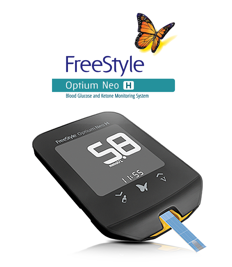 The FreeStyle Optium Neo H system has been specifically designed for the hospital point of care setting, testing for both blood glucose and blood ß-Ketone levels. The FreeStyle Optium Neo H provides the following latest features:-